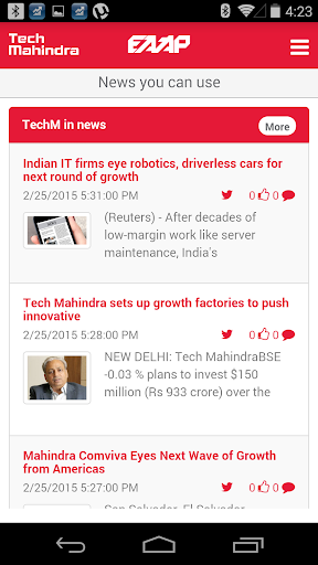 EAAAP is a mobile news application from Tech Mahindra which will keep you connected with the latest news, industry updates, blogs, events, trending solutions and more…