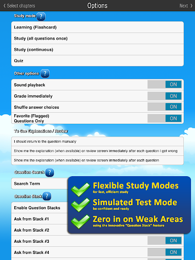Immediately after downloading the app, we strongly recommend that you use the built-in update feature to ensure that you have the latest question sets that we have available. You can update as often as you wish into the future, so that even if you're not quite ready to take the exams now, you can be secure knowing that you're covered.