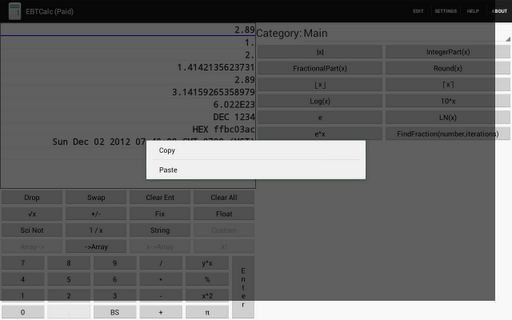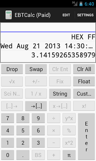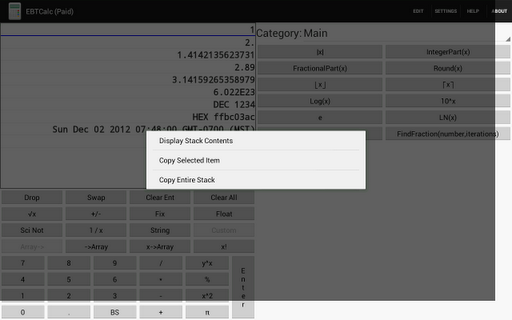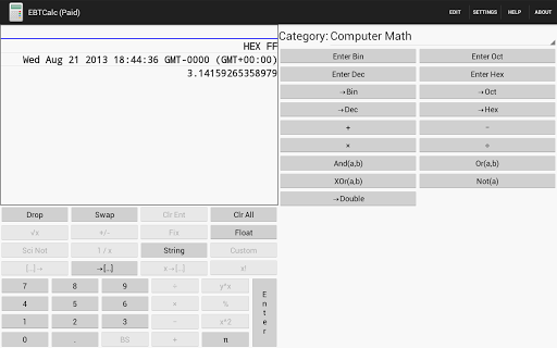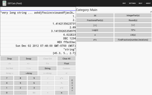 EBTCalc is the ultimate Reverse Polish Notation (RPN) calculator available for Android devices, from tiny phones to large tablets, and everything in between. EBTCalc is available in Free and Paid versions.