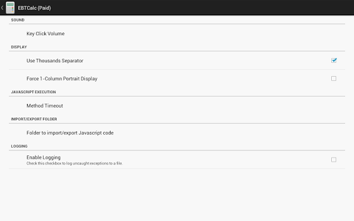 • EBTCalc has a simple logging mechanism for easy debugging.