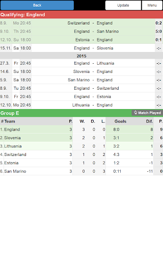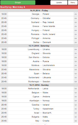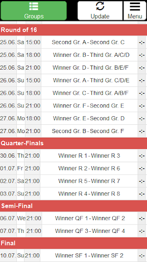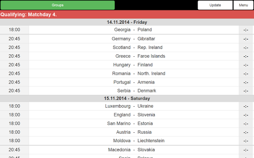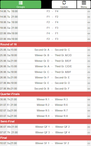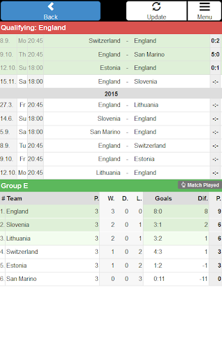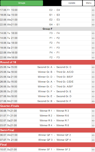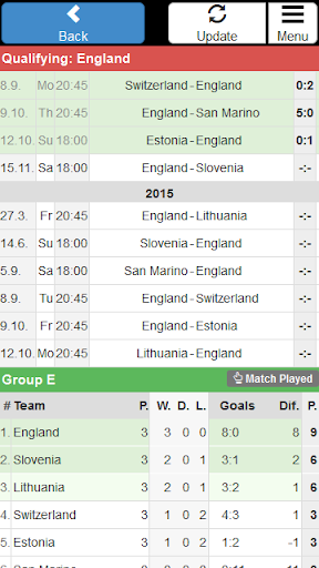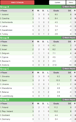 The "EC 2016 Match Schedule + Qualifying" App gives you clear informations about the Football EC 2016 in France.