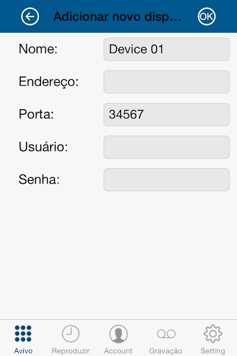 Busca imagens gravadas no DVR remoto e possibilita gravação no aparelho.