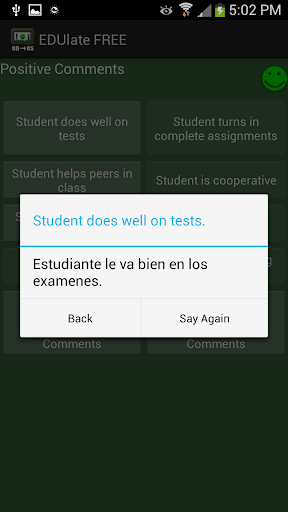 EDUlate is a quick, easy to use translation program for teachers, administrators, counselors and other school personnel. Simply tap on the phrase, and the app will display AND speak the translation. EDUlate has over 20 of the most important and common phrases that school staff members use daily to communicate the strengths and needs of students to parents on a daily basis.