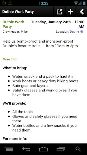 The unofficial Evergreen Mountain Bike Alliance app. The app features EMBA news, trail wiki, calendar (integrated with google calendar), and an about page. Meant for devices with Android 2.1 or higher.