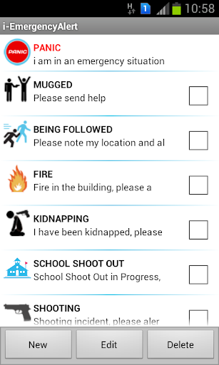 i-EmergencyAlert app allows you to Customize Emergency Templates to individual emergency situations you may find your self in, so you may get the appropriate help depending upon your specific emergency situation.