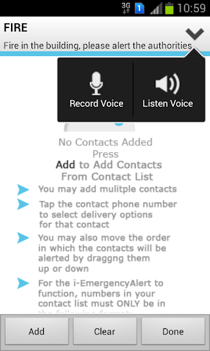 Your set of contacts attached to each separate emergency situation will immediately and simultaneously receive text messages followed by a phone call, with a pre-recorded message in your own voice.