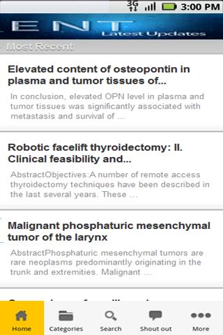 Latest updates in the field of Otolaryngology (EAR,NOSE THROAT)specialty, for surgeons.Includes feeds from leading sites along with titles and abstracts from leading journals in Otolaryngology.