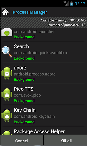 * Kill tasks with a single click, increase memory and speed up your device -- includes a simple widget that stays on your home screen for knowing your current RAM situation and automatically killing tasks, with an ignore list to ignore the applications you want to keep running.Task Manager module required