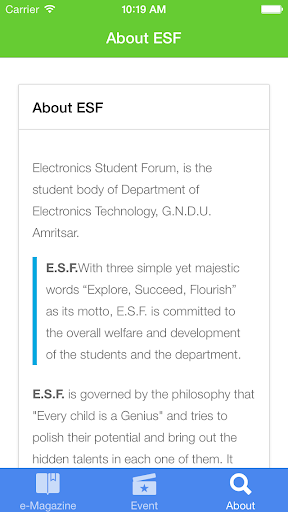 You can see latest blogs and events in this app. It is directly related to ESF website.