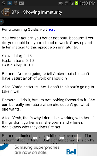 Downloading mp3s on 3G can be costly depending on your provider; using WIFI connection would be preferable in most cases. This app is not endorsed or sponsored ESL Podcast but agreed upon publishing this app. If you have technical questions about the app, please contact ImApp Soft.