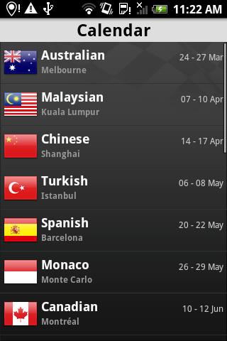 - Count Down Clock - home page features a live count down to the start of the next race;