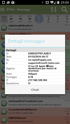 L'app ESVA Personal consente di consultare il registro delle mail in entrata e in uscita, transitate su Libra ESVA, legate alla propria casella di posta.