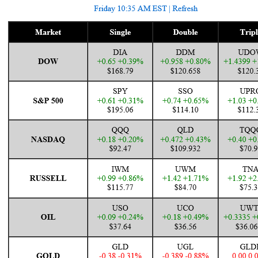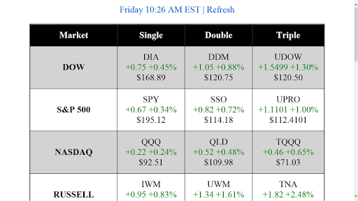 ETF Snapper provides a real-time snapshot matrix of the most liquid ETFs, for the major indexes, sectors and commodities.