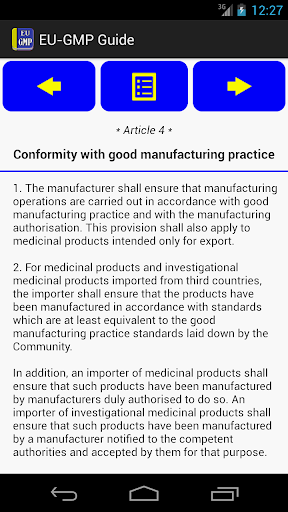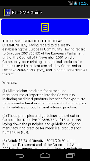 The EU-GMP Guide App presents Directive 2003/94/EC (EU-GMP) in a user-friendly e-format. The users can easily reach to each section of the Directive. This is a convenient self-education and reference for all people working in pharmaceutical and biotech industries.