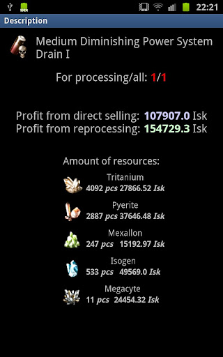 The program help you to earn extra Isk by reprocessing your goods and selling minerals on JitaIV-M4.