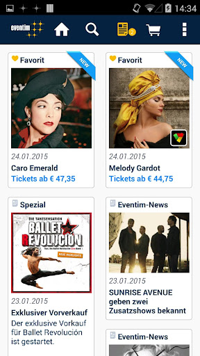 • Ihre persönliche Startseite: Hier haben Sie Ihre Favoriten stets im Blick und sind immer bestens über neue Events informiert. Alles passend zu Ihren Lieblings-Orten und -Genres. Außerdem wird Ihnen angezeigt, ob das hochwertig gestaltete EVENTIM-FanTicket für Ihr Wunsch-Event verfügbar ist.