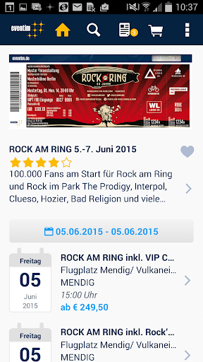 • Sicherer Zugriff auf Ihren Account: Mit Ihrem EVENTIM- oder Facebook-Login haben Sie Zugriff auf Ihre Mobile-Tickets, getätigten Bestellungen und alle Ihre Ticketalarme. Alle Funktionen und Sicherheitsstandards entsprechen denen der EVENTIM-Webseite. Übrigens: Bis auf den Bestellvorgang sind alle Funktionen auch ohne Registrierung zugänglich.