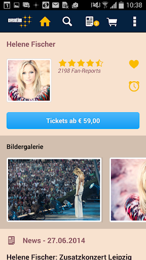 • Event-Empfehlungen: Lassen Sie sich durch die neuen Themenwelten oder Fan-Reports zum nächsten Eventbesuch inspirieren oder verfassen Sie selbst eine Bewertung.