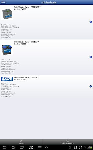 Wählen Sie mit dem einfachen und benutzerfreundlichen Exide Technologies Batterie Finder Android App die richtige Batterie für Ihr Fahrzeug aus.