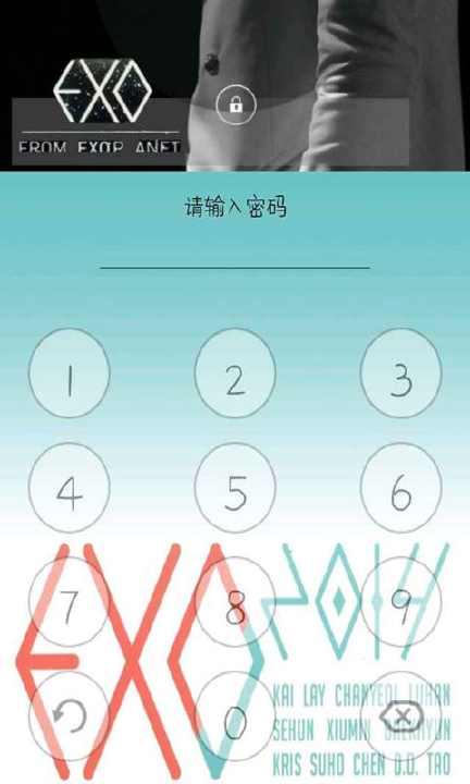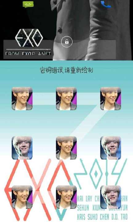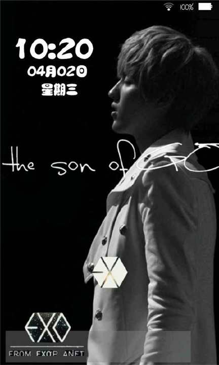 EXO超帅气主题锁屏:按住中间EXO logo,可以四项解锁哦,解锁到桌面,相机,电话,短信,随意哦!