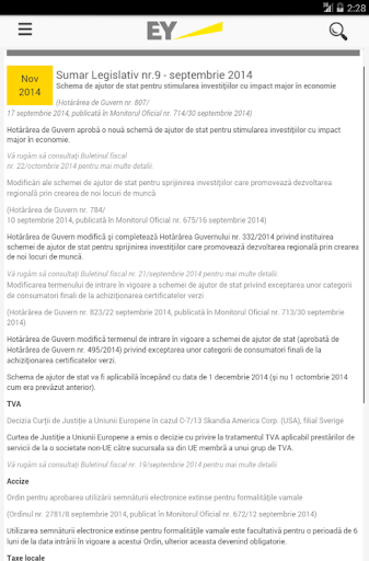 Aplicația EY Flash permite accesul rapid la cele mai recente știri si articole ale specialiștilor EY România și vă oferă detalii despre evenimentele si trainingurile organizate de companie. De asemenea, aplicația vă conectează în timp real la alertele noastre privind modificarile legislatiei relevante pentru companii, oferindu-vă o perspectivă actualizată asupra reglementărilor în vigoare pentru mediul de afaceri din Romania