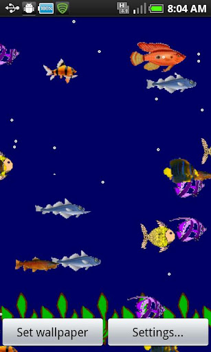 Nice simple aquarium with different swimming fish. Soothing on the eye. Android 2.1+ live wallpaper. Small download. Easy on resources.