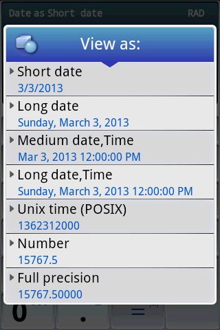Easy Calculator Pro supports date and time functions, may display result in various formats, can work with constants and mathematical functions.