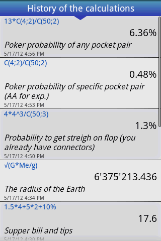 Easy Calculator Pro allows you to keep all the history of your calculations, make notes, send by email or return values and expressions back to the calculator.