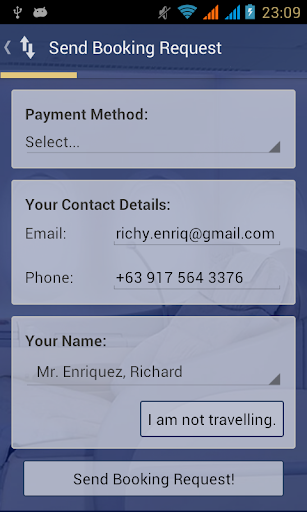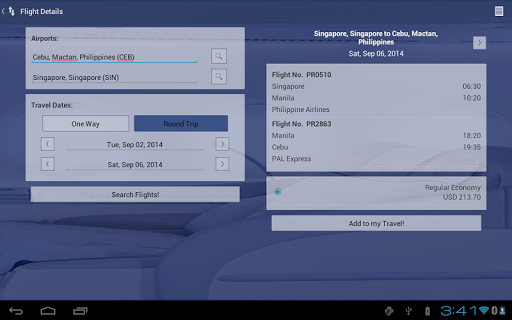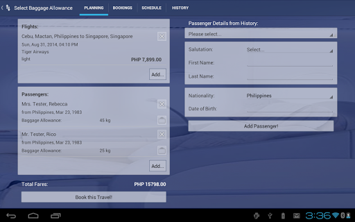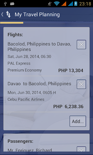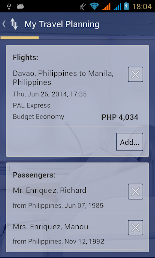Optionally, you can save flights and passenger data to the Easy Lipad travel planning screen, and you can send booking requests to a licensed travel agent in the Philippines.