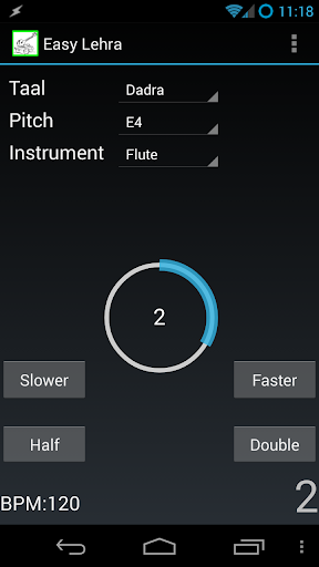 I am a tabla student and I lacked a lehra player for my practice, so I decided to make this application to help with practicing. If you like this application, please consider giving it 5 stars and writing a review. If you would like to see any changes, please email me at udpatil@gmail.com. Also, email me if you would like to see another taal added, and please send me the notes for the taal. Eventually I will add an add your own taal function, but that will be after any fixes and some minor changes that I have in mind for the future.