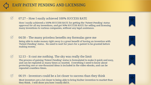 See how I easily achieved a 100% SUCCESS RATE for obtaining the legally powerful PATENT PENDING status for all my inventions, without any legal assistance. I've paid ABSOLUTELY NOTHING for expensive patent legal services, over the past 15 years! See how I easily achieved a 90% SUCCESS RATE for SELLING AND LICENSING many inventions to various companies, for AN INCREDIBLE AMOUNT OF MONEY....AND YOU COULD, TOO!