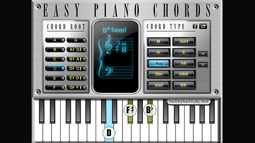 Learn to play all those "Easy Piano" chords found in standard "Easy Piano" books and sheet music with this beautifully designed and easy to use interactive musical learning app. Simply select a chord root on the left, a chord type on the right and then touch the piano to instantly hear how the chord sounds, see the music notation displayed on the glossy LCD screen and view the piano keyboard with all the notes in the chord highlighted and clearly labeled with note names. Learn how to play 240 different chord types!
