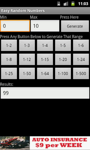 Easy Random Numbers is a fast and free application to generate dice rolls, coin flips, and random numbers within a specified range.