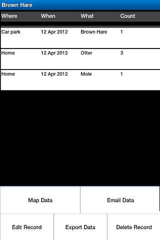 Easy Recorder is the simple way to record all your sightings, with a comprehensive species list, built-in mapping using Google Maps, and export via email (or SD Card) in spreadsheet format. The 'Generic' edition has no built-in species list - you just add the species you want to record. See our other 'Easy Recorder' titles for apps with specific species lists, and feel free to contact us if you require a species list that does not seem to be available. Records from Easy Recorder can be imported into AditSite and Recorder 6 - contact us for more details.