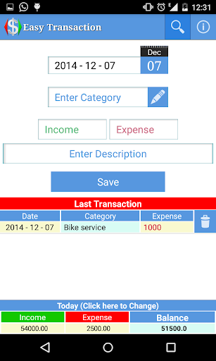 2. Enter category . Examples are Salary, Fuel, Food etc. Category once added will be saved and you may auto-select same later.