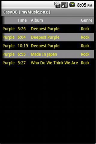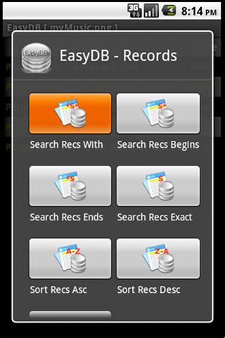 You can manage SQLite databases without any knowledge of SQLite queries. This menu driven app queries a chosen database for you in different ways, by some tap on some chosen button. For more advanced use: You can input your own SQLite queries, to query your databases in your own ways. EasyDB' is perfect to use for to easily structure, store and rapidly access, the text and numerical data you need. The record display is scrollable in both horizontal and vertical direction (when needed).
