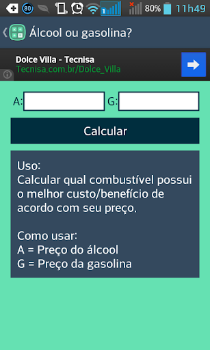 Além disso, o aplicativo conta com cálculos que poderão te auxiliar no seu dia a dia, como "Álcool x Gasolina", que calcula com qual combustível compensa abastecer a partir do preço dos dois.
