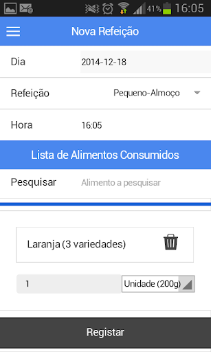 Com esta aplicação, o utilizador pode registar todas as refeições que faz no seu dia-a-dia, com acompanhamento mais próximo do nutricionista. Isto é conseguido através do sistema de notificações implementado na aplicação. O utilizador pode também registar o seu peso, permitindo assim ao seu nutricionista uma melhor avaliação.