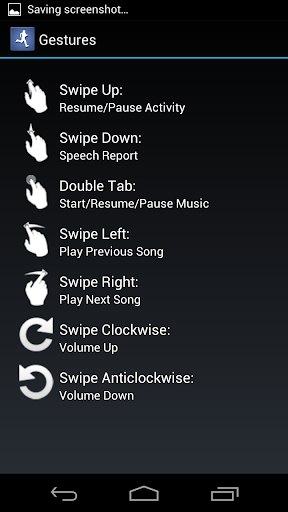The running tracker provides a Gesture UI which lets you use simple gestures to control the functions of the app. With gesture mode, you don't need to look at the screen any more during working out. So it will be easier to switch songs, resume/ pause running or listen to the report of distance, speed, calories and so on. More importantly, it is safer when there are a lot of traffic on the street.