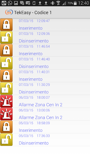 App per il controllo delle centrali serie ETERNITY di Tekalarm.