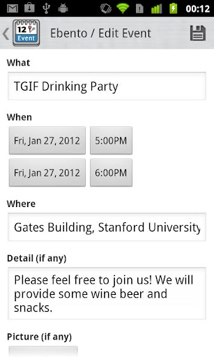 Ebento, pronounced "Event", is an application for planning events on top of "Musubi" social networking platform at Stanford University.