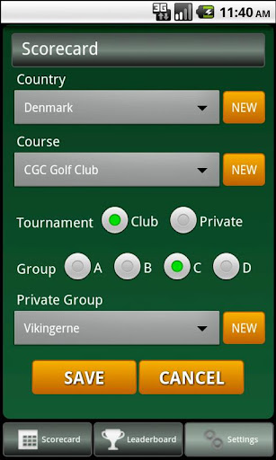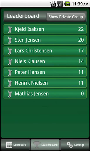 Participate in your golf clubs eclectic tournament, and add a side game by creating your own private group. On the leaderboard you will now be able to follow scores and rank from your club tournament as well as your private tournament.