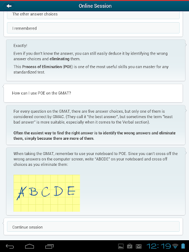 •Login to the desktop version for in-depth features like one-on-one tutoring sessions, GMAT practice tests and a student dashboard that tracks your progress.