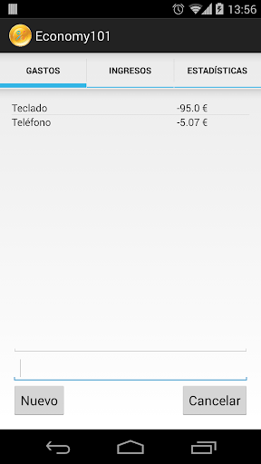 Controla tu gasto mensual con Economy101. Introduce tus ingresos y gastos para no quedarte en números rojos en el peor momento!