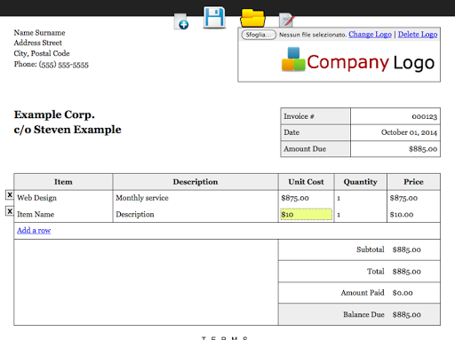 A useful application that allows you to quickly edit your invoices with the rapid addition of products and the automatic calculation of the costs of the individual products and the total amount. You can save your invoices into your external storage and reopen them when you desire it. You can add your logo via a url input, or load it using the button to upload
