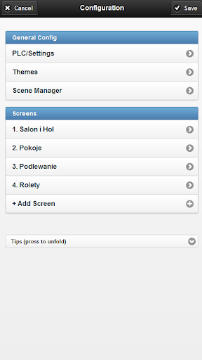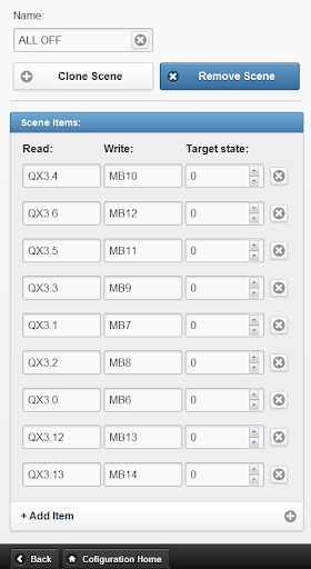 Allows to configure tap buttons, fields reading temperatures and fields reading output states. Easy to configure and to play with.