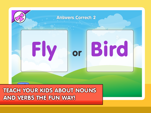 Spelling will help kids learn the proper way to spell through visualizing objects. They’ll also start to understand nouns and verbs in the mini-game Nouns & Verbs.