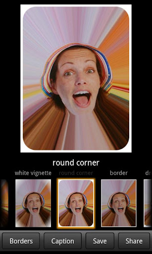 After taking the photo you can apply additional effects like vignette or rounded corners.