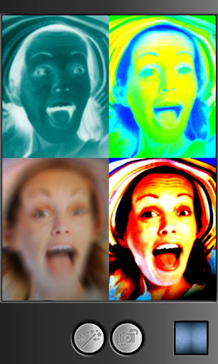Effect Booth has 16 great photo effects which you can see LIVE on your screen before taking the photo. If you have a front facing camera, it functions like a mirror that makes you look funny / like a zombie.