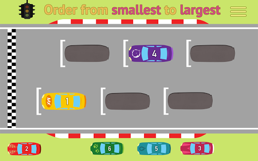 Aimed at the more experienced kids! The race will not start if the cars are not well ordered in the starting line! A funny way to learn number sequences.